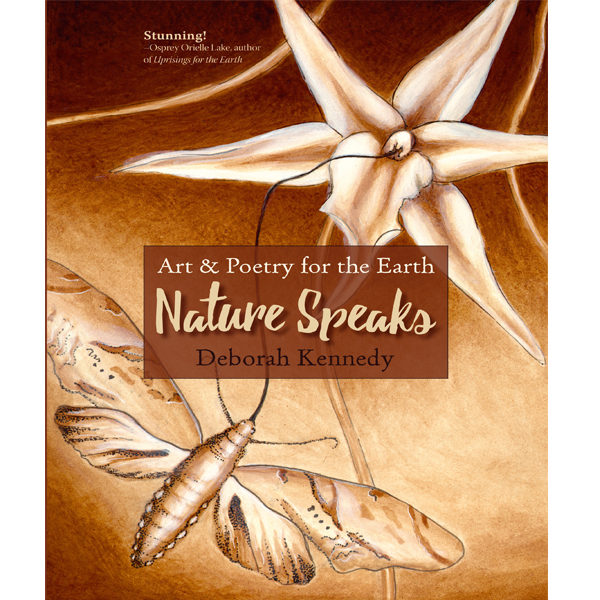 “Each of the elegant poems in Nature Speaks provide a thoughtful pathway through the dense forest of cultural and ecological challenges we face as a species. Deborah Kennedy shows us how to artistically navigate our way with her beauty-making of words and images as we strive to live in harmony with Nature in these most critical of times. Stunning!” –Osprey Orielle Lake, sculptor, founder and president of Women’s Earth and Climate Caucus, author of Uprisings for the Earth: Reconnecting Culture with Nature